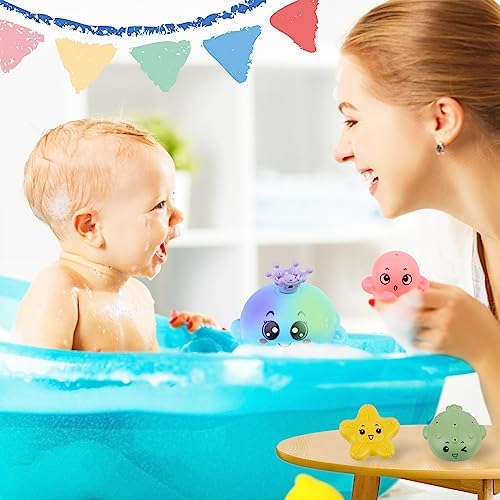 【Cadeau Parfait 】Jouets de bain lumineux pour bébés en forme de Poulpe de dessin animé, avec des jets d’eau et des lumières clignotantes colorées. Une fois mis sur la baignoire, ce jouet pour bébé attirera naturellement l’attention de votre bébé. Avec ce jouet de bain en forme de Poulpe, les bébés seront très excités et apprécieront leur bain à chaque fois. Jouets de bain parfaits pour les bambins, les enfants, les bébés, les garçons et les filles.