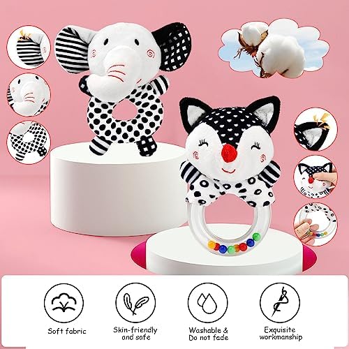 [Jouets pour bébé noir et blanc à contraste élevé] Le développement visuel d’un nouveau-né nécessite une certaine période de temps. Lorsque le bébé a entre 0 et 12 mois, la série noire et blanche de hochet pour bébé est le meilleur choix pour le développement de la vision du bébé. Adorables jouets pour nouveau-nés en peluche douce pour nouveau-nés qui peuvent inspirer le développement visuel de bébé et cultiver la perception des couleurs de bébé, encourager bébé à toucher et à explorer.
