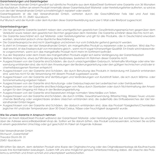 Qu’il s’agisse d’un câble de charge simple ou d’une solution réseau professionnelle : Avec chaque produit KabelDirekt, vous bénéficiez d’un développement propre de haute qualité, conçu et conçu en Allemagne. La qualité de la production est assurée par un processus de test strict en plusieurs étapes.