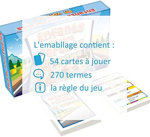 UNE RÈGLE DE JEU SIMPLE ET DE NOMBREUSES CARTES COLORÉES ! L’ensemble comprend 54 cartes, 270 expressions simples et la règle du jeu, qui présente de manière limpide les principes clairs du jeu