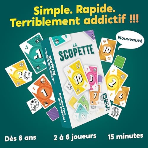 👨👩👧👦 A PARTIR DE 8 ANS, DE 2 A 6 JOUEURS, IDEAL POUR JOUER PARTOUT ! A table, en soirée, en famille à l’apéro, au boulot, en voyage, à la plage, à la montagne ! Un incontournable à avoir dans ses jeux de cartes. La Scopette renouvelle les jeux de société famille adulte avec humour et finesse