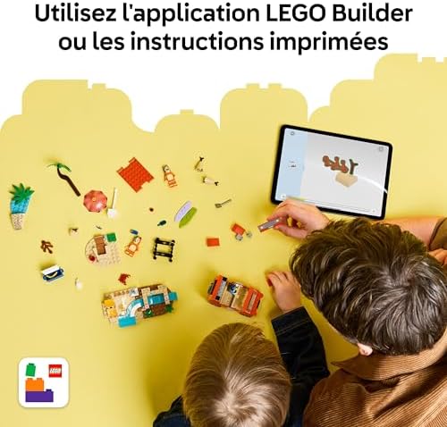 Bluey’s Holiday and Road Trip (11202) construction game features Bluey, Bingo and Mom loading the car to go to the beach. Designed for children aged 4 years and over, girls and boys fans of the Bluey series, the LEGO set stimulates the imagination of little ones and offers a multitude of role-playing games. This interactive toy is a beautiful birthday gift idea that helps develop the ability of the youngest to solve problems. The LEGO toy includes Bluey’s iconic car with 2 surfboards on the roof and a trunk to load the cooler. The roof opens to allow access to the interior equipped with 4 seats for minifigures of Bluey, Bingo and Chilli, Bluey’s mom. Beach accessories include a sand castle, 2 surfboards, minifigure sand mermaid tail, sun lounger, parasol and palm tree, plus a crab, ice cream, sunglasses and sunscreen. The building set includes a colourful instruction booklet and a large starter brick to build easily and start playing quickly. LEGO 4+ sets invite adults and children to share moments of creative play. Dimensions – The vehicle in this set is over 8 cm high, 11 cm long and 5 cm wide. The set contains 133 pieces.