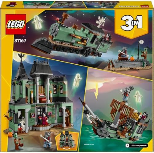 LEGO Creator 3-in-1 Haunted Manor House Toy Transforming into a Haunted Boat or Train Set – 5 Minifigures – Halloween Decoration – Original Gift for Boy or Girl from 9 Years Old 31167
