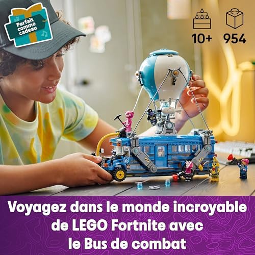 Spark kids’ imaginations with the LEGO Fortnite Battle Bus (77073) building set designed for fans aged 10 and up. Inspired by the incredible Fortnite video game, this LEGO building set invites fans of the game to create a stunning Fortnite vehicle. Fans travel to the exciting world of LEGO Fortnite building the bus, featuring spinning wheels, a removable roof, and the cult hot air balloon. But this is just the beginning! Once the LEGO Fortnite bus is finished, they’ll love discovering the included accessories, like bluing, grappling, pickaxes, and slap juice, as well as Fortnite’s 9 iconic skins minifigures. For even more realistic adventures, they can take place on the bus. Once the building toy is complete, kids can proudly display this LEGO Fortnite collector mockup in their bedroom or playroom. It is also a great gift for kids aged 10 and up, passionate about video games and LEGO Fortnite, who will spend hours exploring their creativity with this building set. This buildable bus measures over 28cm high, 28cm long and 13cm wide. The set contains 954 pieces.
