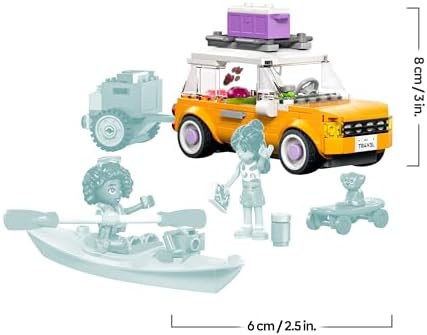 Give girls and boys aged 6 and up a world full of adventure with the LEGO Friends Friends Road Trip (42659). This action-packed building set includes a car and trailer, 2 LEGO Friends mini-dolls, an adorable puppy and plenty of role-play accessories. On the way to a creative journey! The children help Liann and Aliya load the car and trailer with the necessities for their getaway. The friends sit in the front and the dog in the back. Accessories include a kayak, 2 helmets, skateboard, roller skates, 2 armchairs and a cooler box containing a sandwich, donut, biscuit, cherries and a dog treat. At picnic time, the cooler also serves as a table. Toys from the LEGO Friends universe (sold separately) stimulate creative play. The LEGO Builder app offers kids an intuitive building adventure: they can zoom, rotate models, save their sets and track their progress. Dimensions – The car in this set is over 8 cm high, 19 cm long and 6 cm wide, including trailer and roof accessories. Set contains 220 pieces