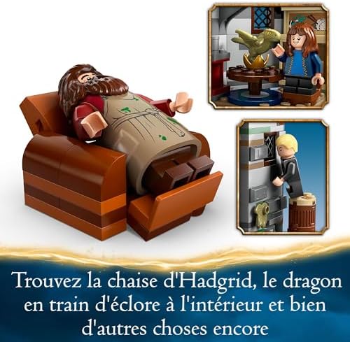 Relive the scene in which Harry Potter and his friends arrive by surprise at Rubeus Hagrid and invent other stories with this LEGO Harry Potter Hagrid Hut – An Unexpected Visit Set (76428). It includes Hagrid’s cabin, which has a removable roof that opens for easy access to the detailed interior. It also includes a folding chair for Hagrid, a dragon egg, 2 out of 14 Hogwarts portraits to collect and more. The outdoor dog house of Crockdur, Hagrid’s dog, offers other play possibilities. This building toy includes an iconic Harry Potter location and 5 LEGO minifigures: Harry Potter, Hermione Granger, Ron Weasley, Drago Malefoy and Rubeus Hagrid, as well as Norbert and Crockdur. Are you looking for a Harry Potter gift idea for kids aged 8 and up? This Wizarding World themed building toy is perfect for both autonomous play and for building and having fun with others. Hagrid’s hut measures over 17cm high, 19cm wide and 15cm deep and contains 896 pieces. Hagrid’s hut measures over 17cm high, 19cm wide and 15cm deep Contains 896 pieces