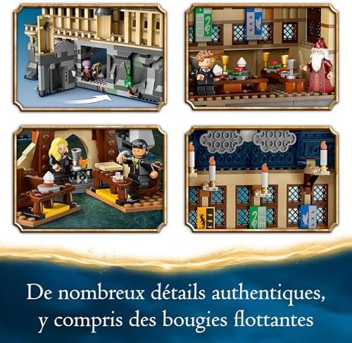 Invite your young wizard, witch or Muggle to join Hogwarts students and teachers in the Great Hall with this LEGO Harry Potter Hogwarts Castle Set (76435). This magical toy for boys, girls and Harry Potter fans from age 10 includes the largest LEGO brick reproduction in the Great Hall. It contains the saga’s iconic floating candles and fake sky, but also the courtyard, dungeons with a secret entrance and 3 detailed rooms: a bathroom, a corridor and the common room of Hufflepuff, which can be moved for ease of play.