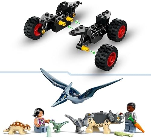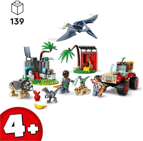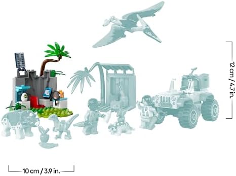 Young fans aged 4 and up can take care of and play with baby dinosaurs while learning to build with this LEGO Jurassic World Baby Dinosaur Rescue Center Set (76963). It includes an all-terrain vehicle and a search area with a cave wall, both with Starter Brick elements, plus a feeding station, 2 figures, Ankylosaurus, Triceratops and Velociraptor baby figures, plus Velociraptor child and adult dinosaur figures to get the game started quickly. Illustrated instructions are included with this LEGO dinosaur toy for kids just learning to read. For more digital fun, the LEGO Builder app offers intuitive zoom and rotate tools that help boys and girls see their model during construction. LEGO Jurassic World 4+ sets introduce young kids to their favorite movie and TV characters, and offer a fun dinosaur LEGO set as a gift. They come with specially designed Starter Bricks, so even novice builders can create vehicles, buildings and much more with a little help from an older sibling or adult. Includes search area measuring approximately 12cm high, 10cm wide and 12cm deep. Contains 139 pieces.