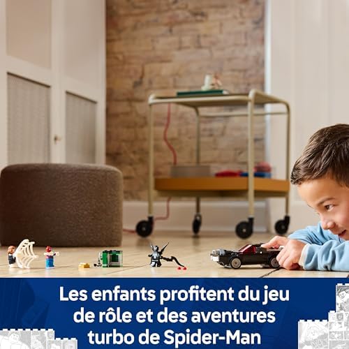 Spider-Man vs Venom’s Car (76309) is an amazing building game designed for boys and girls aged 7 and up. This LEGO toy makes a great gift for young superheroes, Marvel fans, and LEGO brick-loving kids aged 7 and up. Venom’s LEGO car comes with 3 minifigures: Spider-Man with a canvas launcher, Venom with 4 tentacles and Spider-Woman (Julia Carpenter) with a soft canvas large enough to trap a villain. The venomized car has a cannon on each side, an accessible engine and an opening cockpit. Venom can sit inside the car without its 2 lower tentacles. In a context where good and evil oppose, children can play to pull the safe filled with gold bars with the car. For more fun, builders can zoom, rotate models in 3D and track their progress with the fun and intuitive LEGO Builder digital app. 254 PIECE BUILDABLE PLAY SET – The venomised car measures over 1.5″ (4cm) high, 8″ (20cm) long and 2.75″ (7cm) wide. 254-piece buildable playset – The venomised car measures over 4 cm high, 20 cm long and 7 cm wide The set contains 254 pieces