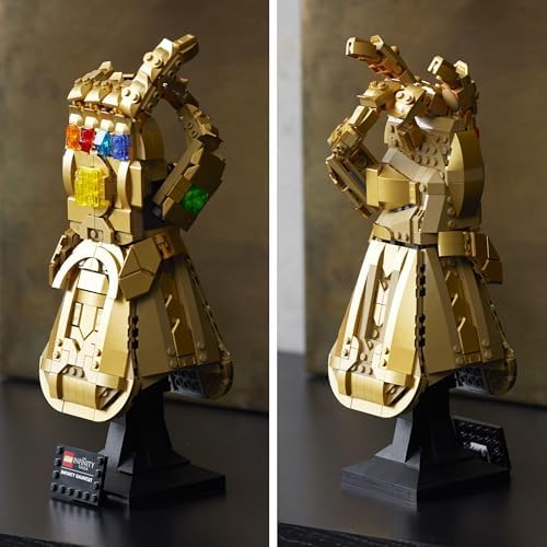 The LEGO Marvel Infinity Glove (76191) is a challenging construction project that rewards the builder with an impressive decorative element that perfectly evokes Marvel style. This LEGO brick re-enactment of the iconic Infinity Glove featured in Marvel Studios’ Avengers: Infinity War and Avengers: Endgame is sure to attract attention no matter where it is. With its movable fingers, the Thanos glove features brightly colored infinity stones and a descriptive tablet attached to a sturdy stand. This gold LEGO Avengers glove and a collectible as well as being a rewarding construction challenge. This Marvel collection for adults is the perfect gift for any construction or Marvel Universe fan. Escape the world around you and immerse yourself in LEGO relaxing adult build, ideal for anyone interested in creative building or comic book culture.