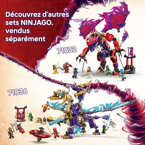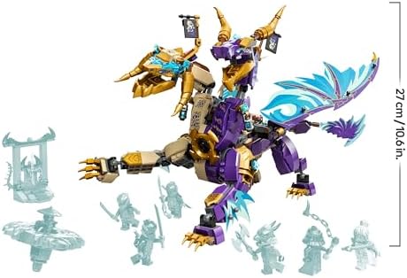 With the LEGO NINJAGO Arc: The Dragon of Concentration set (71836), boys and girls from 9 years old can replay scenes from season 3 of the NINJAGO Dragon Uprising TV series. This toy includes a 2-headed dragon with a tail, paws, feet, head, neck, jaw and articulated claws. Children can operate the launcher on their torso and move their large aluminium wings thanks to the lever on its back. This battle building set includes 8 NINJAGO minifigures that make up a host of stories: Ninja warriors Lloyd, Cole, Brasera and Kai and their ally Pixal with weapons, as well as the villains Drix, Zarkt and a draconic warrior who are also armed. For even more creative play possibilities, this LEGO toy comes with a Spinjitzu spinner. Kids can place a minifigure inside and press a button to launch. When the spinning top hits its target, 2 power elements can fly away. DIMENSIONS – The Dragon Arch of Concentration in this LEGO NINJAGO kids building set stands over 10.6″ tall. The set contains 869 pieces.