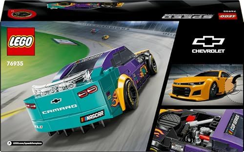 Kids 9 and NASCAR fans can collect, build, display and play with the NASCAR Next Gen Chevrolet Camaro ZL1 LEGO Speed Champions (76935). This powerful racing car with bright colors and flames includes details from the real NASCAR Cup Series vehicles. The NASCAR LEGO toy car features realistic details, such as the rear spoiler, front grille, hood, headlights, wheels, interior with safety cage, dashboard, gear lever and fire extinguisher, as well as the Camaro, Cup Series and NASCAR logos. It comes with a LEGO minifigure of NASCAR driver to place behind the wheel to play racing. This LEGO Speed Champions building set is an ideal gift for a child, boy or girl, aged 9 and up, for a birthday or for the holidays. With LEGO Speed Champions vehicles, kids and car fans can enjoy building the replica of legendary vehicles. Each car can be created by following paper instructions or the LEGO Builder app, which offers a simple and intuitive building adventure. Measures over 4 cm high, 16 cm long and 7 cm wide. Contains 328 pieces