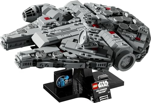 The Star Wars saga is invited into your living room with this buildable and exhibited Millennium Falcon LEGO Star Wars collector (75375). Focus like a Jedi to recreate the details of the mythical starship of Star Wars: A New Hope. Expose your creation oblique on the buildable stand to display the Millennium Falcon in battle position. Add the sign and a special LEGO Star Wars 25th Anniversary Brick to create a decorative item that will bring back fond memories. This buildable Star Wars vehicle is part of a collection of medium-sized LEGO Star Wars ships. Treat yourself or other Star Wars fans and collectors to give this set a great gift. This LEGO Star Wars set for adults offers a complex creative building challenge. You can download the LEGO Builder app to zoom and rotate your 3D models, track your progress and save your sets in one place. The set measures over 13cm high, 24cm long and 19cm wide. Contains 921 pieces.