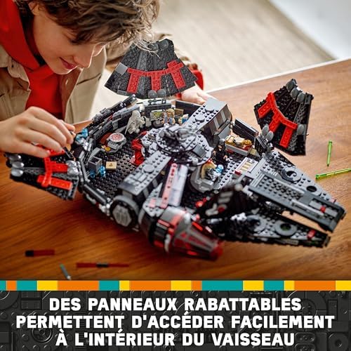 The Black Falcon in LEGO Bricks – This Star Wars toy contains surprising details, it includes a removable cockpit for 2 LEGO minifigures, 2 spring-loaded rifles, 2 rotating cannons, a shooter station for 2 LEGO minifigures and a radar antenna