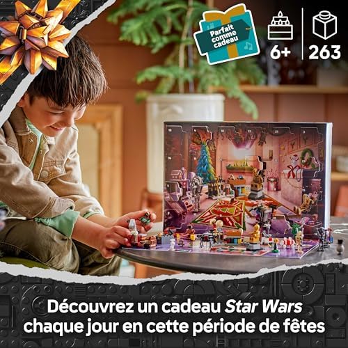 Kids will have hours of fun creating their droid blacksmith workshop and imagining fantastic stories as mythical characters with the LEGO Star Wars Advent Calendar 2025 building set (75418). Housed with a unique building toy behind every window, this advent calendar is a fabulous gift that will help kids and fans aged 6 and up to wait until Christmas. Check out BB-8 in snowman outfit, a Jawa, a mouse droid and a medical droid in festive outfits, as well as many other droids. This LEGO Star Wars collector set also includes the LEGO figure of blacksmith Babu Frik and miniature models to assemble to create your own workshop, as well as a Jawa crane and vehicle, a box of droid spare parts… and a Christmas tree, of course. With one surprise a day, children and the whole family share endless creative activities while waiting for Christmas. CHRISTMAS ACTIVITIES FOR KIDS, FRIENDS AND FAMILY – This buildable advent calendar inspires children to play alone or with friends and promotes family activities during the holidays. The set contains 263 pieces.