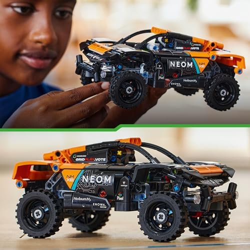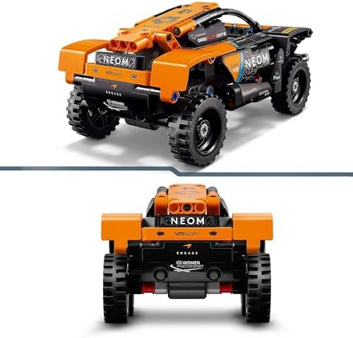 Vous recherchez un cadeau de voiture fascinant pour les enfants qui aiment les jouets de course ? La LEGO Technic NEOM McLaren Extreme E Race Car (42166) offre aux garçons et aux filles de 7 ans et plus beaucoup de plaisir de construction. Et le moteur à rétrofriction fait ensuite filer le modèle fini. Quelle sensation palpitante ! Cette voiture à rétrofriction LEGO dispose de pneus tout-terrain imposants, d’une peinture spectaculaire et de logos authentiques des partenaires qui reflètent fidèlement l’apparence du modèle original. Votre enfant aimera jouer comme s’il était un vrai pilote Extreme E, participant à des rallyes dans les endroits les plus reculés du monde. Faites vivre à votre enfant une aventure de construction fascinante avec l’application LEGO Builder. Avec les fonctionnalités incluses, votre enfant peut agrandir et faire pivoter les vues du modèle de voiture à rétrofriction et suivre sa progression de construction. Ce kit de construction de modèle de voiture LEGO Technic se distingue par des détails réalistes qui permettent aux jeunes constructeurs LEGO de comprendre les concepts techniques de manière accessible. C’est pourquoi ce jouet de voiture LEGO Technic est un excellent cadeau d’anniversaire pour les enfants de 7 ans qui aiment les véhicules LEGO et les voitures jouets. La voiture mesure 8 cm de haut, 18 cm de long et 10 cm de large Contient 252 pièces
