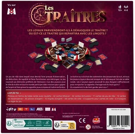 Les Traîtres de Goliath est un jeu de société fascinant qui plonge les joueurs dans le monde mystérieux et palpitant de l’espionnage et de la tromperie. Dans ce jeu d’intrigue, chaque participant incarne un agent secret dont la mission est de découvrir les traîtres parmi eux, tout en préservant jalousement son propre rôle secret. Avec une combinaison de bluff, de déduction et d’interaction sociale, « Les Traîtres » offre une expérience de jeu unique et immersive. L’objectif du jeu est simple en apparence : les joueurs doivent déterminer l’identité des traîtres tout en gardant secrète leur propre appartenance à l’une des équipes. La tension monte au fur et à mesure que les joueurs cherchent à découvrir qui est un allié fiable et qui est un traître sournois. Les choix stratégiques et les décisions cruciales sont au cœur de chaque partie, et le suspense est à son comble jusqu’à la fin. Ce jeu est conçu pour être facilement compréhensible, ce qui le rend accessible aux joueurs de tous niveaux. Les règles sont simples, mais la complexité réside dans la déduction et la stratégie que chaque joueur doit déployer.
