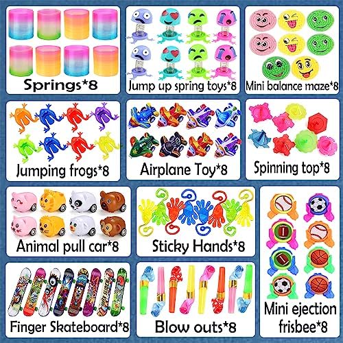 Ces jouets de fête en vrac intéressants sont presque adaptés à toutes les fêtes, ils peuvent être utilisés comme cadeaux d’anniversaire pour les enfants, remplisseur de pinata, cadeaux de Pâques, remplisseurs de sacs à friandises, prix de boîte au trésor pour la salle de classe, prix de carnaval pour les enfants, assortiment de cadeaux pour les garçons et filles, cadeaux de fête, bas de Noël, jouets de boîte de prix, jouets de coffre au trésor, etc.