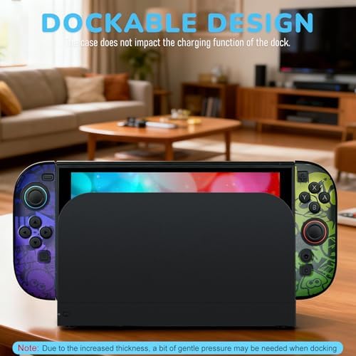 Dockable – The Switch 2 cover can be inserted directly into the dock without having to remove it. Due to its thickness, slight additional pressure may be required when inserting it. Note: screen protectors that are too thick may hinder insertion; thinner protection is recommended for optimal connection