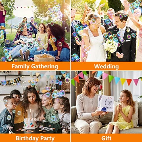 [Meilleur cadeau de jouets pour enfants] Les enfants sont ravis des bulles, un cadeau parfait qui offre des heures de plaisir à toute la famille et mettra un sourire sur le visage de chaque enfant ! Idéal également pour créer une atmosphère romantique lors de rassemblements tels que mariages, défilés, fêtes, anniversaires et toute autre activité que vous organisez. Pour votre satisfaction absolue, nous sommes fiers d’offrir une assistance client à vie avec notre machine à bulles pour enfants.