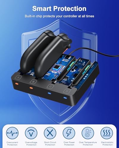 Controller Charging Protection: The charging dock (compatible with Joy-Con 2 and Joy-Con 1 controllers) incorporates advanced secure charging protection: overload, overcurrent and short circuit protection, ensuring the safety of your controllers. Charging indicator lights (Orange = Charging, Blue = Fully Charged/Standby ) let you check status at a glance. It smoothly switches between charging Switch 2 and Switch controllers, ideal for gamers with multiple devices.