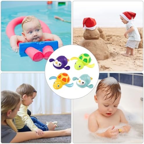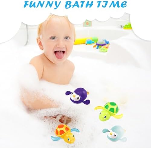 Design Mignon: L’ensemble contient 4 jouets : Tortue (jaune, vert) et Pingouin (violet, bleu), les couleurs vives et les formes éclatantes attirent rapidement l’attention de bébé, lui permettent de jouer et d’apprécier le temps passé dans le bain