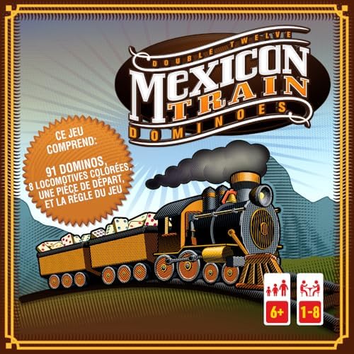 Le train mexicain est une version amusante du jeu de dominos original. Avec des couleurs différentes et une gamme commune, vous disposez désormais d’options de jeu plus tactiques. Le jeu est rapide à jouer et à apprendre et procure des heures de plaisir. Le but du Train Mexicain est d’être le premier à éliminer toutes les pierres ou d’avoir le moins de points possible à la fin du tour. Celui qui a le moins de points à la fin gagne. Le jeu de plateau Train mexicain contient 91 dominos, 8 mouvements, 1 pierre centrale (la gare) et les instructions du jeu.
