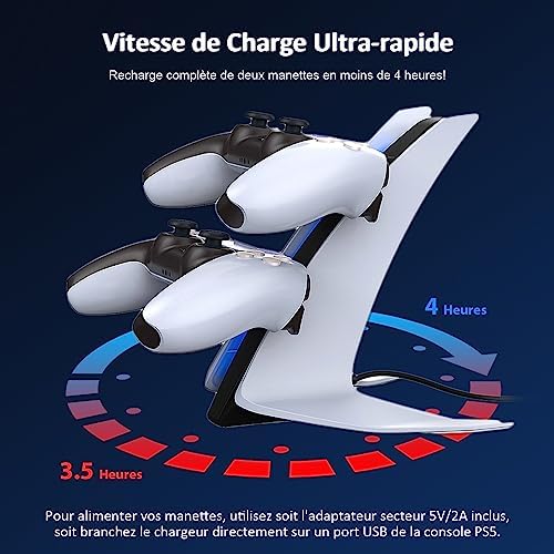 【Intelligent Protection】Built-in smart chip provides intelligent overload protection, protect your controllers from overcharging, over-voltage, overheating and short circuit. A must have PS5 accessory.