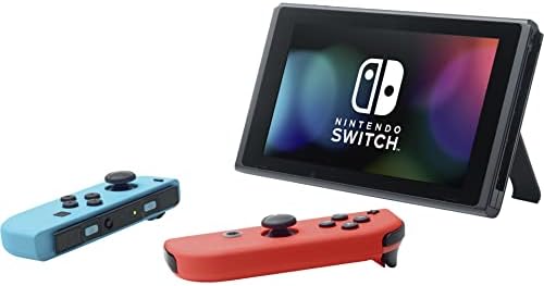 1 console with 1 neon red right Joy-con controller and 1 neon blue left Joy-con controller