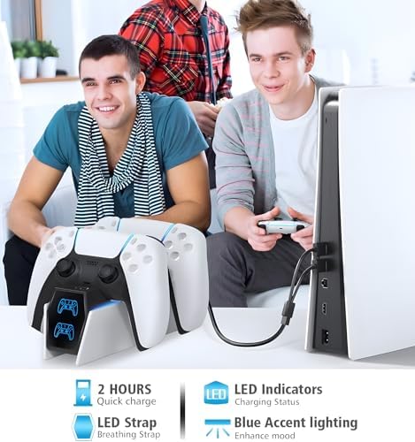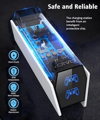 Built-in protection chip: This Playstation 5 controller charging station is integrated with a smart chip to protect your PS5 controller against overcharging, overheating, over voltage and short circuits, etc.