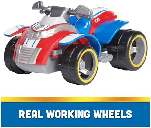 La Pat Patrouille est de sortie avec ses véhicules de sauvetage. Rejoignez Ryder dans des missions palpitantes avec son quad miniature de sauvetage. Ryder et son véhicule Pat Patrouille sont fabriqués à partir d’au moins 52 % de plastique recyclé. En cas d’urgence, placez Ryder (figurine incluse) au volant et partez en mission de sauvetage grâce aux roues fonctionnelles. Avec leurs détails réalistes, le très apprécié leader de la Pat’Patrouille et son véhicule vous permettront de recréer les palpitantes aventures de la Pat’Patrouille. Amitié, courage et travail d’équipe sont au programme avec Ryder et son Rescue ATV. Leurs péripéties stimuleront l’imagination des enfants. Faites équipe avec les autres chiots et leurs véhicules de sauvetage (vendus séparément) et partez ensemble à la rescousse de La Grande Vallée. Filez à la rescousse pour de grandes missions sauvetages avec Ryder et son quad !