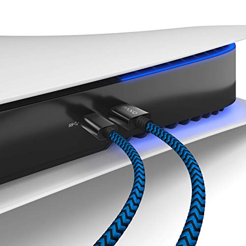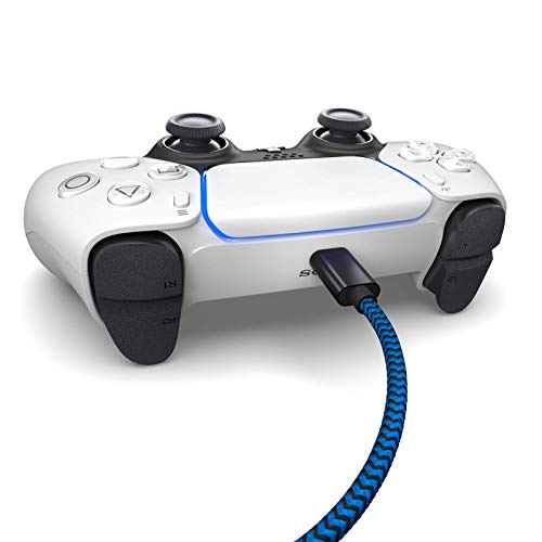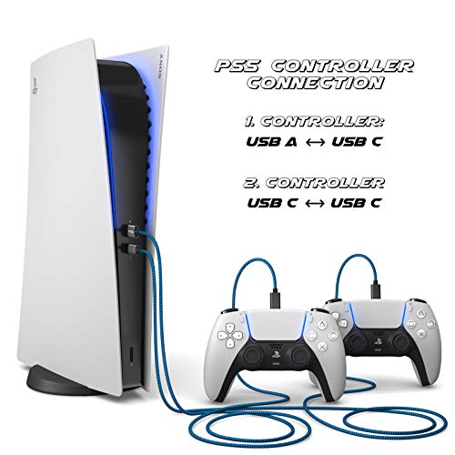 PAXO PS5 Nylon Charging Cable 3 m for Playstation 5 Controller USB C to C Cable, USB 3.1 (USB 3.0) Charging Cable, Fabric Sleeve, Aluminium Plug, Blue-Black