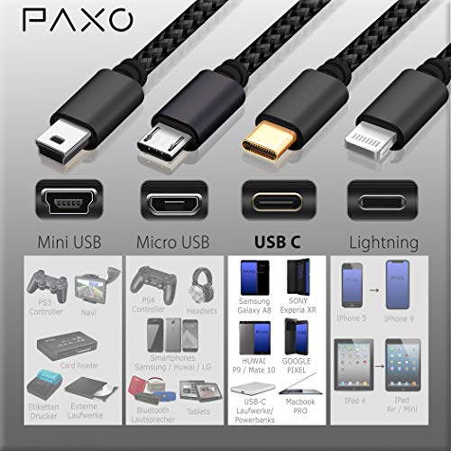 The stylish and sturdy charging cables from PAXO are also suitable for PS4 controllers, cameras, tablets, smartphones and various other devices.