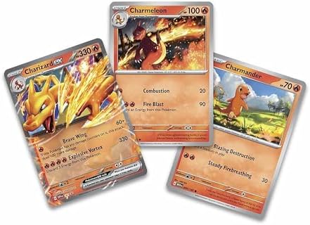 With explosive attacks and a huge HP, Charizard ex has a dominant presence on the battlefield Bring that burning tenacity to life on your desk, bookcase or bedside table with a stunning Charizard figure with translucent fire effects to show off a favorite map, like Charmander, Charmeleon or Charizard ex that you also get in this collection Even more of pleasure awaits you in a stack of 10 booster packs of different TCG extensions Pokémon