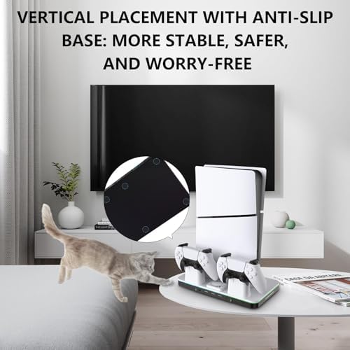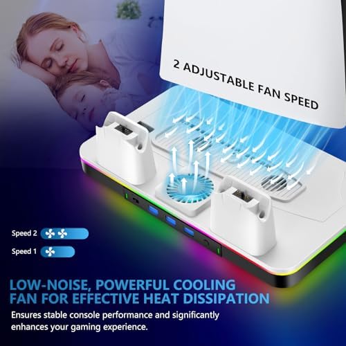 Cooling Base: PS5 Pro cooling fan with two adjustable speeds (high/medium) Effective heat dissipation from the bottom and sides of the console keeps your PS5 cool and quiet during long gaming sessions