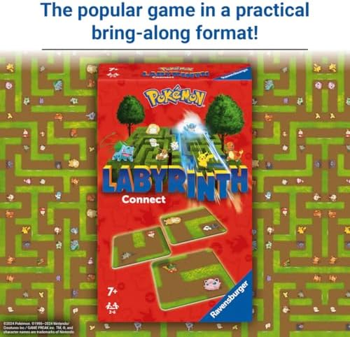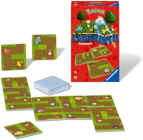 Enter the maze and try to find your way back thanks to the different Pokémons. Cleverly lay down your cards to link identical Pokémons with each other thanks to the paths of the maze. This is your only way to catch them all! But beware, the paths change constantly! Labyrinth Pokémon Connect is a board game for the whole family. You will have to show tactics and a little luck to hope to win the game. The course of a game is very simple. In turn, add a card from your hand to the maze by extending the path of one of the cards already laid. If in this way you have formed an uninterrupted path between two identical Pokémons, you win the card with this Pokémon that was already present in the maze. Whoever has the most cards at the end of the game is declared the winner! After a few games, children are even able to play with each other without the help of an adult. With its small size, you can slip Labyrinth Pokémon Connect into a small bag and take it anywhere and even when travelling.