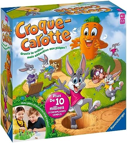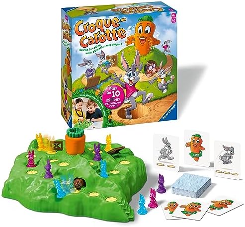 PARTIES RAPIDES : Le jeu idéal pour un après-midi amusant pour 2 à 4 joueurs : grâce au suspense permanent, aux règles de jeu simples et aux tours de jeu courts, même les plus petits sont directement enthousiasmés. Croque Carotte est un jeu très apprécié des enfants et des parents ! Convient parfaitement comme cadeau d’anniversaire, cadeau de Noël.