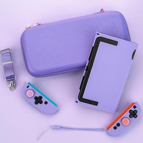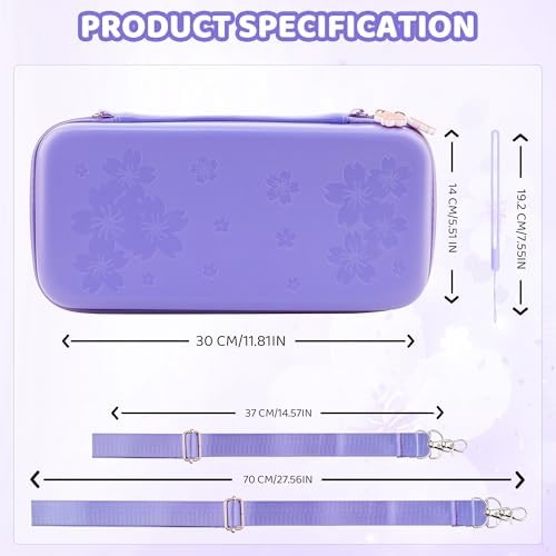 RHOTALL Cherry Blossom Purple Carrying Case for Nintendo Switch 2025 7.9 inch, Travel Case with Hard Shell for Switch, Screen Protector, 2 Thumb Caps – Sakura