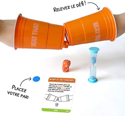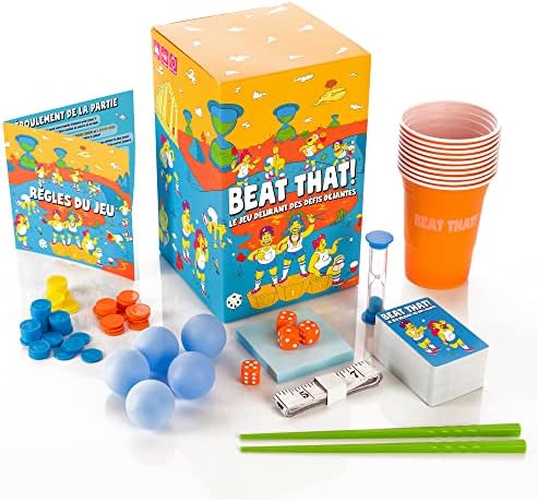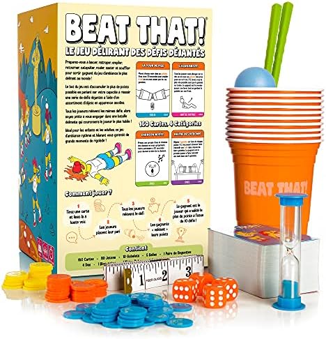 ⚡️UN JEU FUN, DRÔLE ET RYTHMÉ – Ce jeu de societe hilarant vous offrira des heures de divertissement où vous devrez parier sur votre capacité à réussir une série de 160 défis délirants qui mettront vos nerfs à rude épreuve ! Pour un cadeau, une soirée, des vacances en famille, un anniversaire, une fête entre amis, un EVG, un EVJF, Beat That est le jeu de société parfait pour des heures de rires et le jeu de l’année 2023