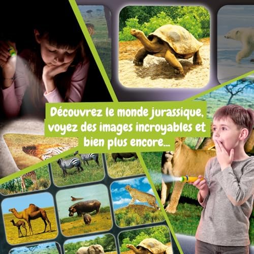 【Projecteurs de Dinosaures】 Avec cette lampe de poche éducative et scientifique, vous apprendrez tout sur les dinosaures, projetez-les dans votre chambre. 3 piles seront nécessaires (LR1130 – 1.5V) qui ne sont pas incluses dans le kit.