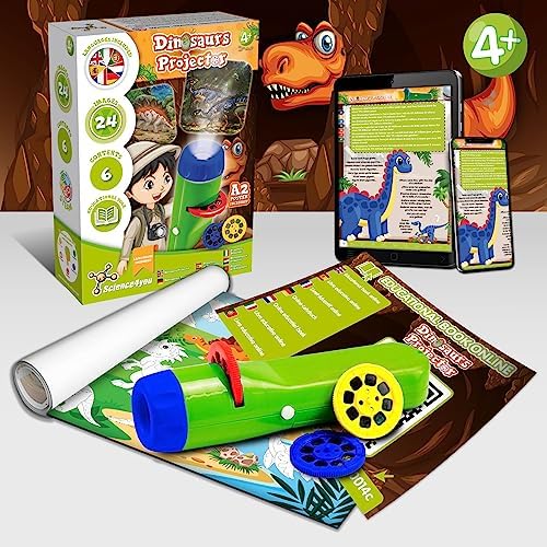 Amusez-vous avec ce jeu éducatif et projetez des dinosaures dans votre chambre. Profitez de 24 images différentes et explorez votre affiche dinosaure A2.