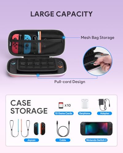 360 Full Body Protection The PU hard case is waterproof and dustproof. The soft velour inner lining provides extra cushioning. Molded recesses hold the Switch 2 securely in place, while the drawstring design allows for quick access.