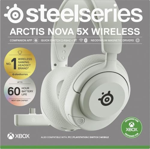 SteelSeries Arctis Nova 5X Wireless Gaming Headset – Magnetic Neodymium Speakers – Over 100 Audio Profiles – 60h Battery – 2.4GHz or BT- Micro ClearCast Gen 2.X – Xbox, PC, PS5, Switch 2 – White