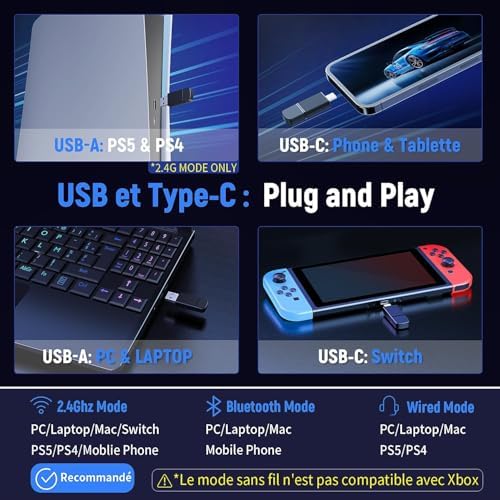 ⚠️Compatibility: Wireless Dongle for PC, PS4, PS5, Switch. The 3.5mm audio cable is compatible with Xbox, PC, Laptop, Switch, PS4, PS5.