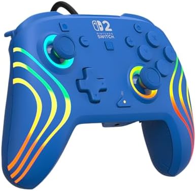Enhance your gaming experience with the Afterglow Wave Wired RGB Gaming Controller for Nintendo Switch 2. This controller is also compatible with Nintendo Switch and Nintendo Switch consoles – OLED model. With eight customizable RGB zones and four preset modes, you can easily adapt the lighting to your style or mood. Built-in Hall effect sticks offer even more precision, responsiveness and durability over time, while the built-in 3.5mm headphone jack and audio controls help you stay fully immersed in the game. Quickly access GameChat features with the cleverly placed C button. Dominate every game with assignable quick-action buttons on the back, textured handles, and a secure wired connection for ultra-responsive control. Show off all your colors with the officially licensed Afterglow Wave Wired RGB Gaming Controller from Nintendo.