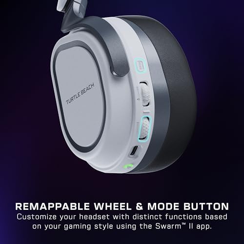 The Turtle Beach Stealth 700 wireless cross-platform gaming headset for PlayStation, PC, Steam Deck and mobile devices has been revisited for a third generation offering true gaming prowess. The all-new CrossPlay wireless system with dual USB transmitters and simultaneous Bluetooth connectivity provides quick and easy connection to game consoles, PCs and mobile devices. The two 60mm Eclipse drivers deliver unmatched audio quality, while the Gen 3 flip-off mic with AI noise isolation delivers exceptional voice clarity. In addition, the associated Swarm II app allows you to adjust the microphone and sound settings exactly the way you want. Dominate the game for hours and in total comfort with best-in-class 80-hour battery life and memory foam ear pads. The two 60mm Eclipse transducers are the largest in their class. You’ll hear the difference, with unmatched acoustic precision and deep bass that delivers immersive spatial audio on console and PC. Both drivers are designed with a distinct woofer and tweeter, to separate high and low frequencies and give you a level of audio detail far superior to other speakers on the market. 80-hour battery life is best-in-class, for more gaming and less waiting. 15-minute fast charge lets you immerse yourself in the action with 3 hours of battery life. Completely redesigned for the third generation of the Stealth 700, the all-new flip-off unidirectional microphone features AI acoustic isolation to deliver crystal clear mic quality with as little background noise as possible. Use the associated Swarm II app for desktops and mobile devices to adjust noise gate, sensitivity, and mic feedback levels. You also have a choice of four different mic presets and can even create your own, with a custom 10-band microphone equalization. To adjust the Eclipse 60mm drivers to your needs, browse the four audio equalization presets in the Swarm II app, create up to five custom presets with 10-band audio EQ, adjust the mix for game and chat volume, and enable or adjust the Turtle Beach-exclusive Advanced Superhuman Hearing sound setting. And for more customization, you can change the dial and mode button on the headset, depending on your game mode. The revisited headband and ear pads allow you to dominate the game for hours, with unparalleled comfort. The fluffy memory foam ear cushions are wrapped in a blend of leatherette and breathable mesh, for optimal freshness and sound insulation. In addition, the ear pads feature ProSpecs technology dedicated to goggles, so whether you wear prescription glasses or dedicated to gaming, you will enjoy optimal comfort. For long lasting fit and durability, the Stealth 700 features a reinforced steel arch structure, combined with an adjustable design that can lay flat.