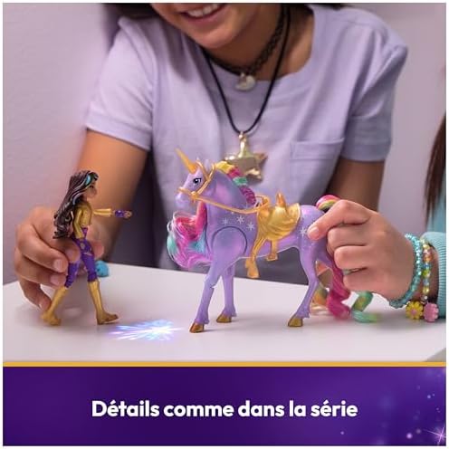 POUVOIR LUMIÈRE ARC-EN-CIEL – Recréez le lien entre la chevaucheuse Sophia et sa licorne Wildstar avec de vraies lumières arc-en-ciel; Inspiré de la série NETFLIX et des livres à succès pour enfants, ce jouet enfant 4 ans et + prend vie comme par magie