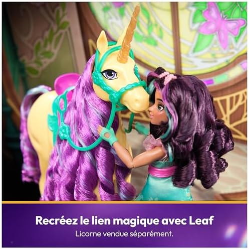 8 ACCESSOIRES – Coiffez les cheveux méchés de la poupée Ava et découvrez ses vêtements comme dans la série : 1 robe à pétales, 1 pantalon d’équitation coloré avec les motifs magiques de Leaf sa licorne, 1 ceinture papillon et des bottes florales