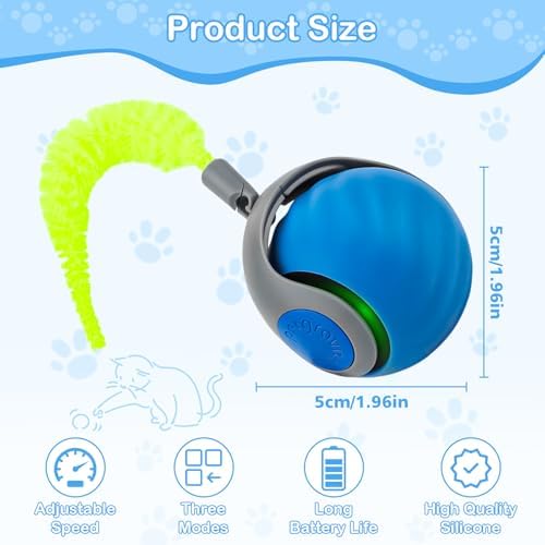 Jouet pour chat silencieux:La surface de la balle est enveloppée de silicone, ce qui élimine essentiellement le bruit de roulement sur le sol et réduit le bruit lors de la rencontre d’obstacles, ne perturbant pas la tranquillité quotidienne du propriétaire. Même le fait de jouer la nuit ne dérangera pas les voisins et ne perturbera pas leur sommeil.