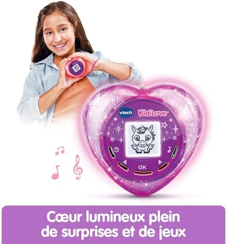 VTech - KidiLove, Cœur Magique avec Effets Lumineux, Écran Rétroéclairé, Animal Virtuel Surprise, Réveil, Musique, Jouet Électronique Nomade, Cadeau Enfant de 5 Ans à 10 Ans - Contenu en Français